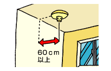 住宅用火災警報器の中心を壁から60cm以上離します。